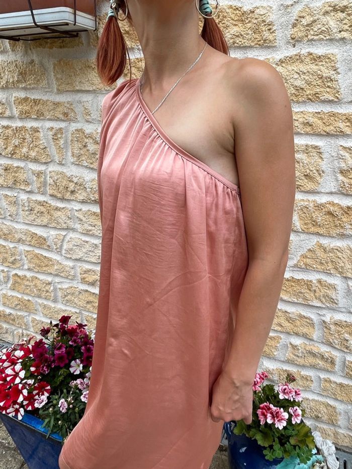 Robe courte à une épaule couleur saumon - photo numéro 1