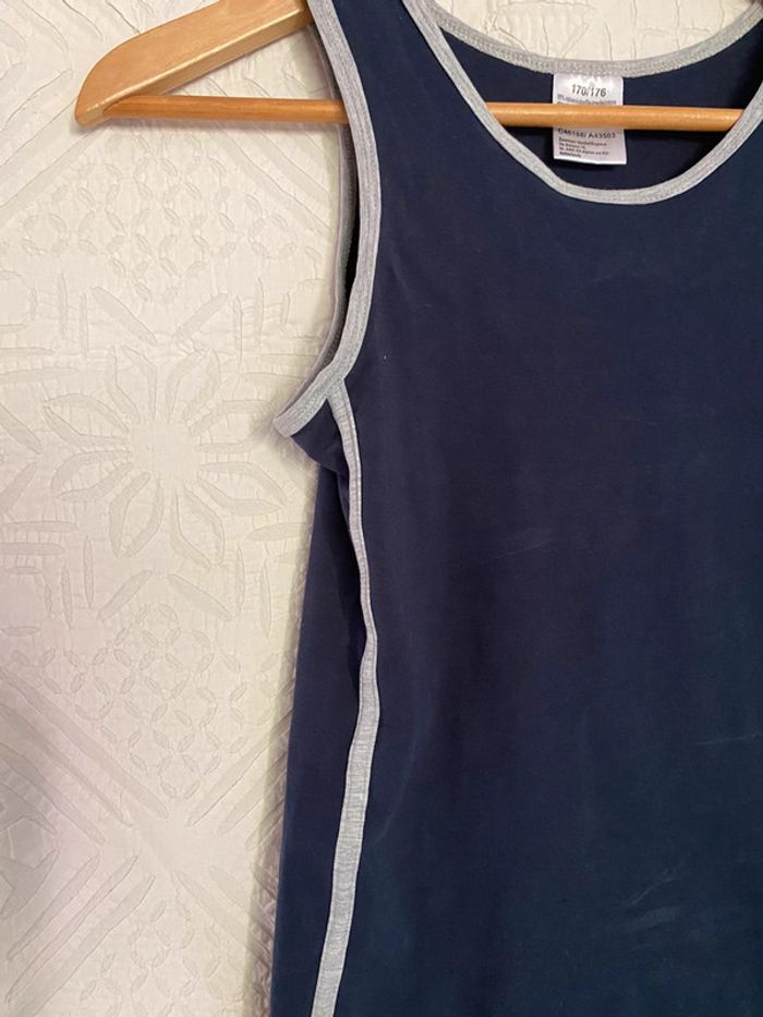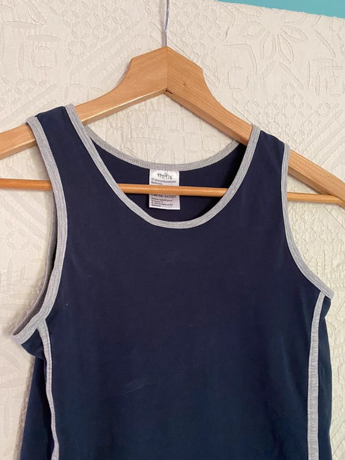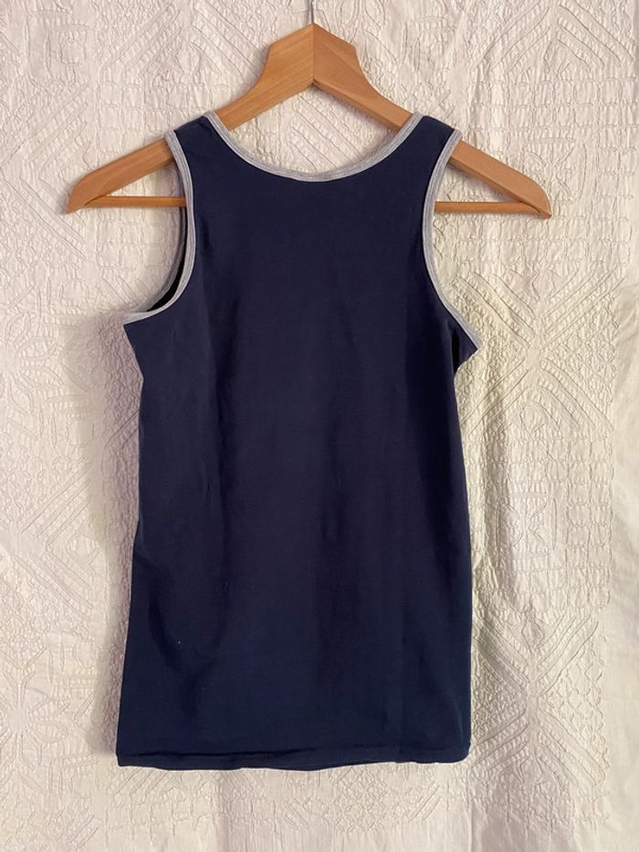 Débardeur bleu marine et gris Taille 170 / 176 cm ~> 16 ans mais qui taille petit 95 % Cotton 5 % élasthanne En très bon état #16anspoulette