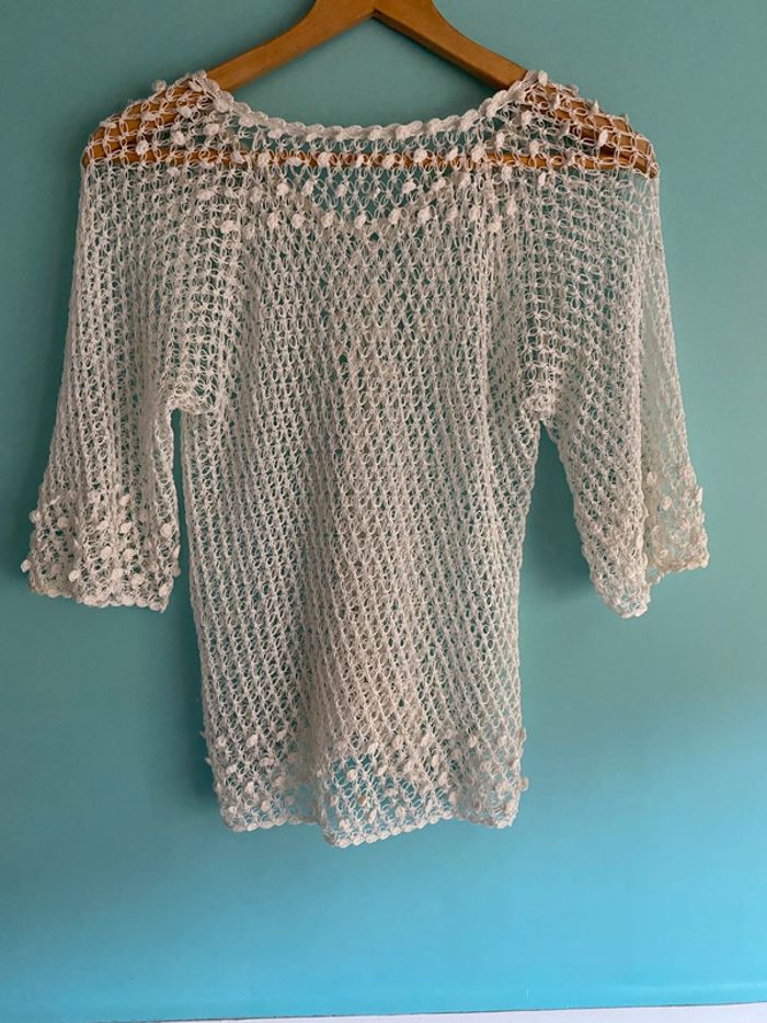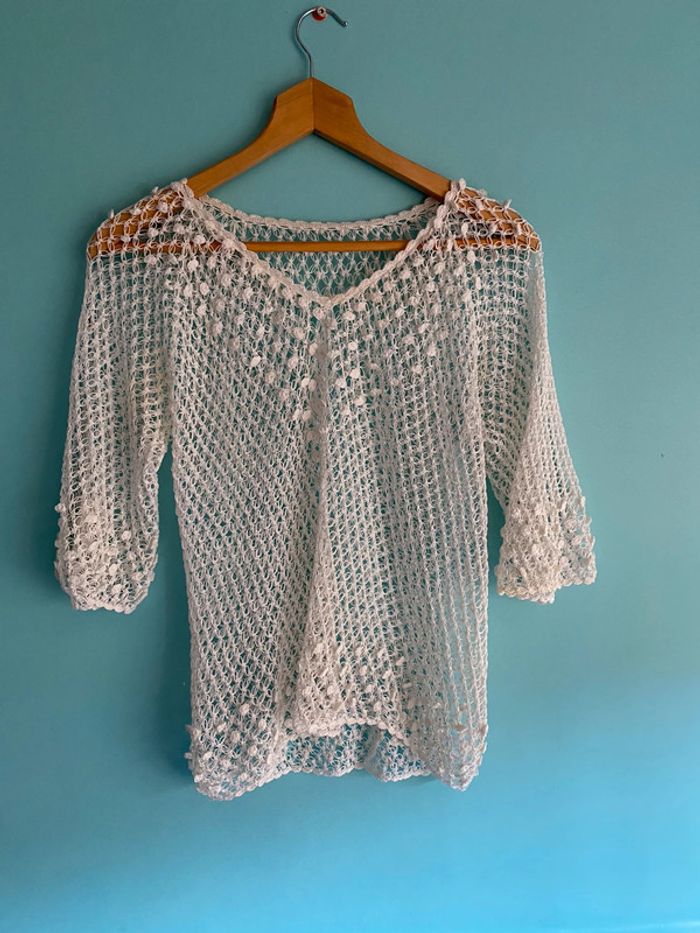 Haut blanc transparent tout ajouré taille 38 en très bon état