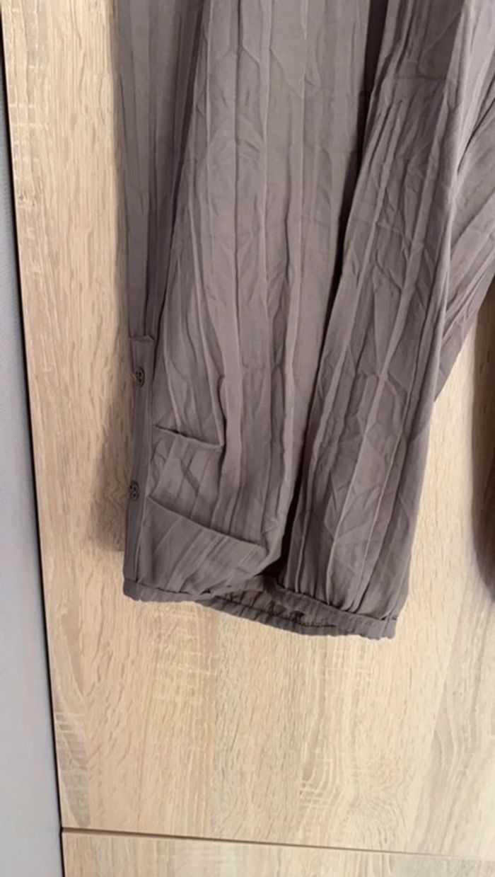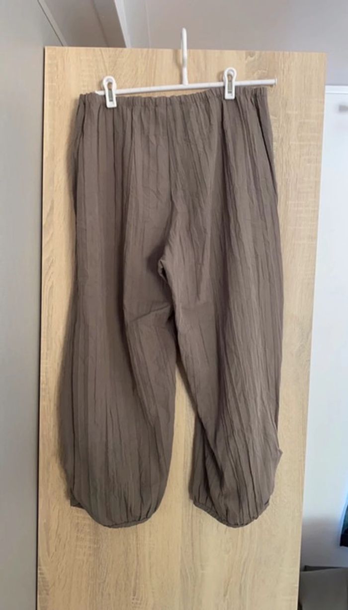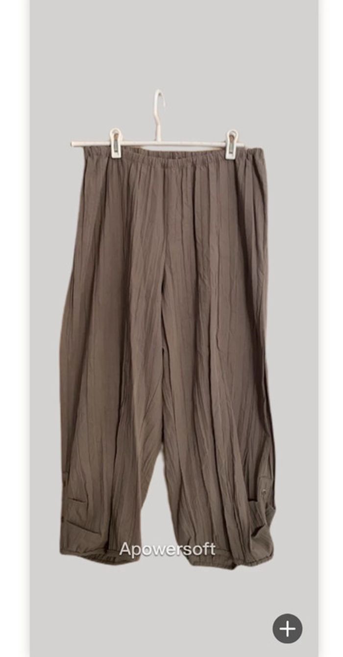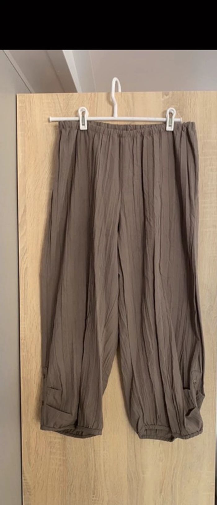 Pantalon marron taupe jambes larges élastique en bas du pantalon. taille 3 > 40 68% polyester 32% viscose