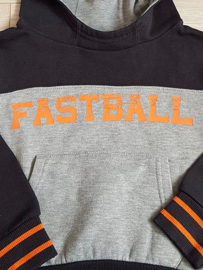Sweat à capuche avec poche devant. Le sweat est en bon état mais l'inscription présente des signes d'usure