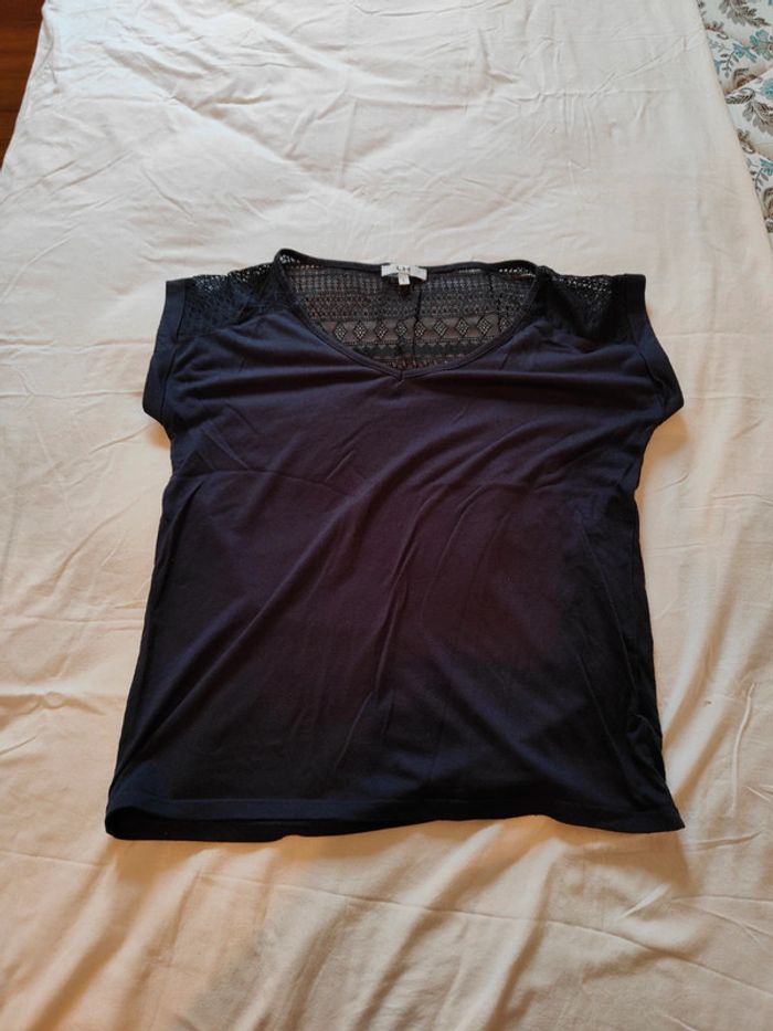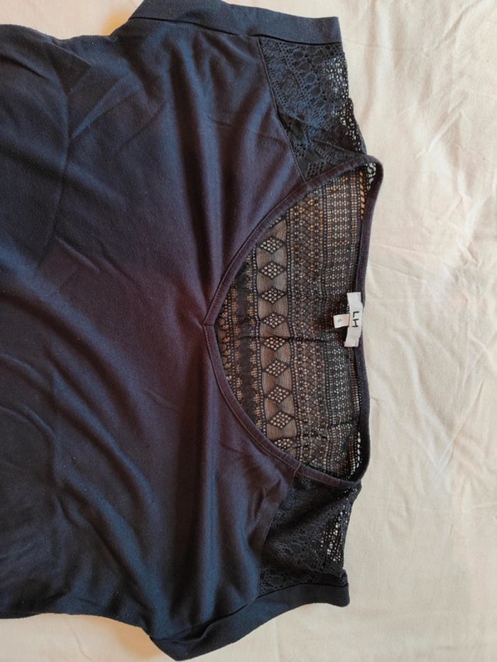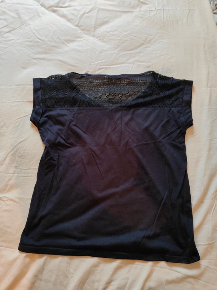 Tee-shirt à manches courtes Bleu Détails dentelles dans le dos En très bon état Taille S #marjoriepersenot_femme_s