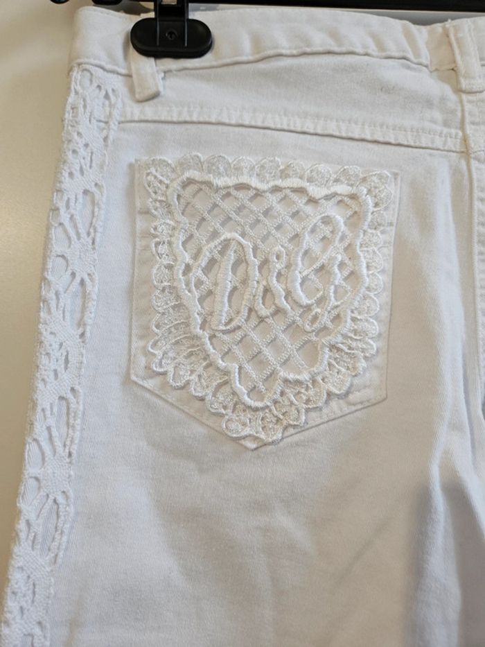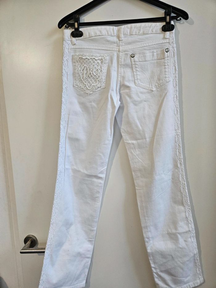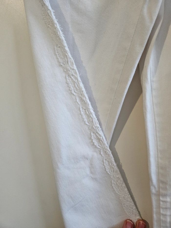 Jean blanc avec broderies sur les côtés et sur la pochette arrière