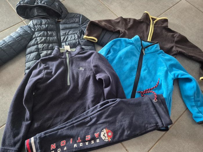 Un gilet zippé et un pull système u bon état Un pull Décathlon bon état Doudoune Kiabi très bon état Bas jogging Pat Patrouille très bon état N'hésitez pas si besoin de plus de détails
