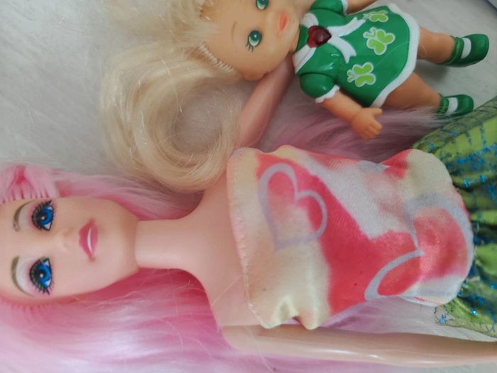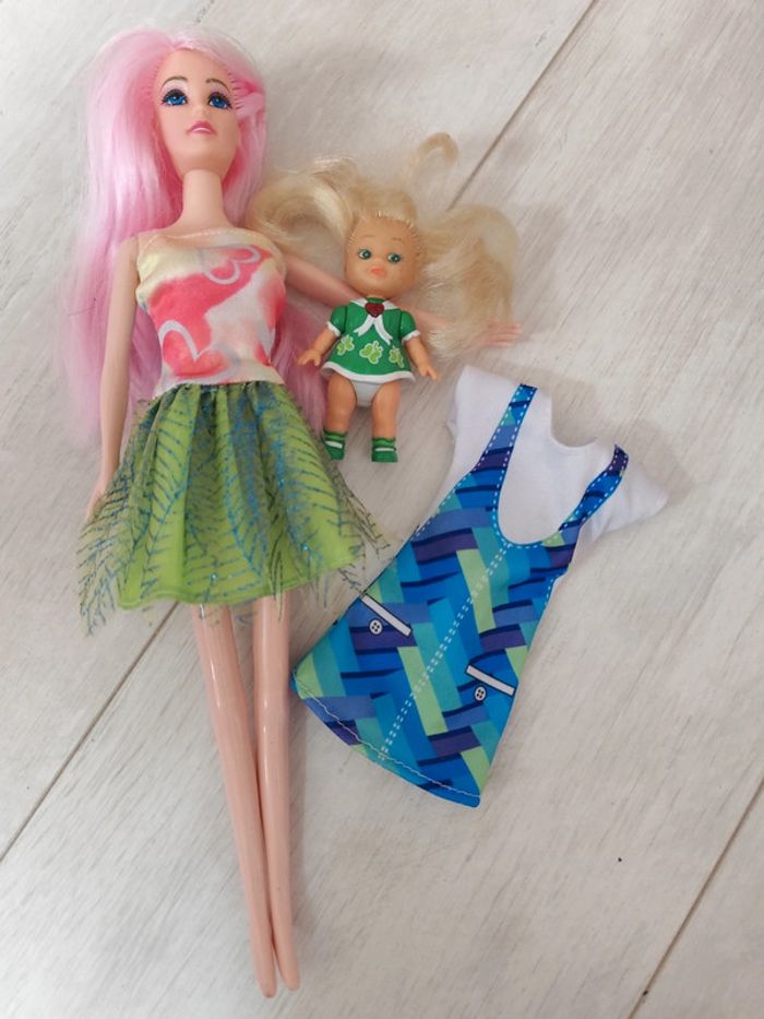 Barbie cheveux rose, robe fée Et enfant + 1 tenue de rechange