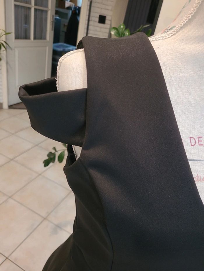 Robe habillée Tissu épais Robe patineuse neuve asymétrique Longueur devant: 85 cm Longueur arrière : 100 cm Épaules dénudées Extensible Profond décolleté dans le dos Pas de fermeture, elle s’enfile. Marquée comme taille 42, mais taille petit