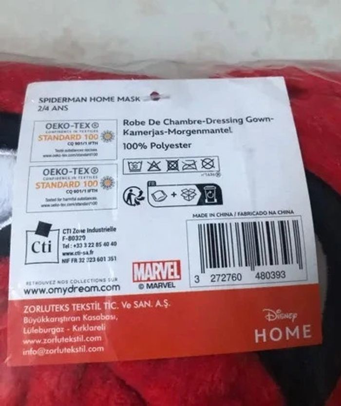 Peignoir de chambre imprimée à capuche, SPIDERMAN HOME MASK 2-4 ans Neuf dans emballage Retrouvez Spiderman dans ce peignoir polaire imprimé à capuche accompagné de sa broderie. Peignoir tout doux pour tous les amateurs du super-héros. taille : 2/4 ans Adorable peignoir enfant pour les 2/4 ans. Le plus La capuche et sa broderie. Lavable à 40°. Licence officielle, certifiés label OKEO-TEX et membre de la BSCI