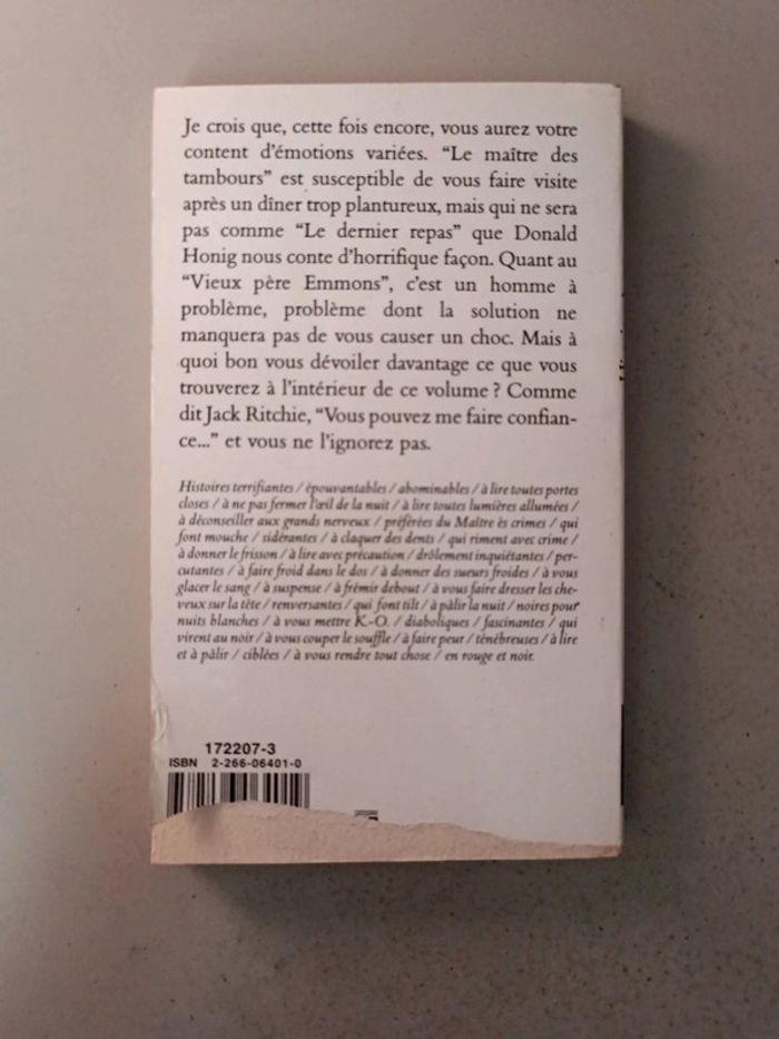 Rare et collector Alfred Hitchcock histoires à vous glacer le sang. La dernière de couverture est abîmée sinon le reste du livre est en bon état. Voici le lien pour voir tous mes livres : #romain75015_Livres et #romain75015_Alfred_Hitchcock. Envoi rapide et soigné bien protégé pour le transport. N'hésitez pas à faire un lot pour avoir des réductions et mutualiser les frais de port.