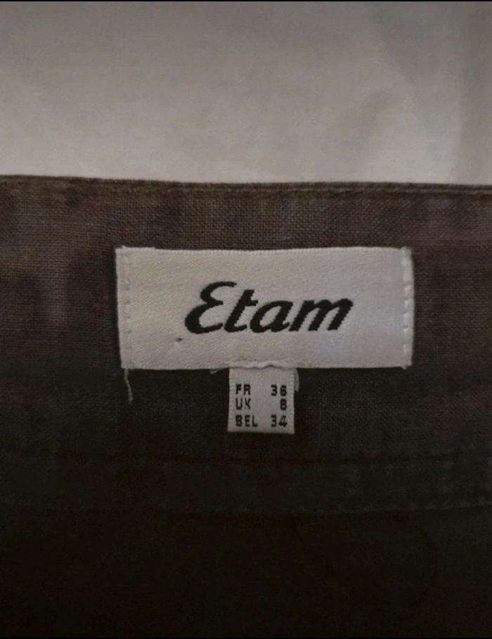 Jolie jupe courte marron Etam taille 36 Longueur 51cm Taille à plat 36cm Bon état #flagadajonestaille36 #jupe36 #etam36 #jupeetamtaille36 C5N
