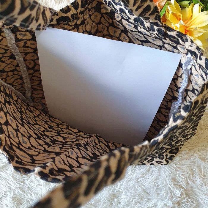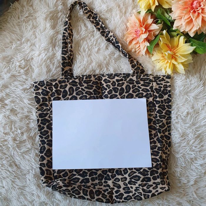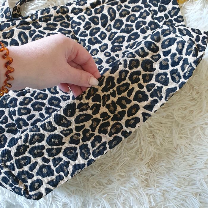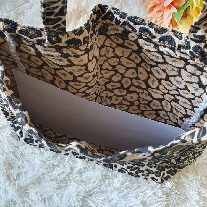 👜 Sac à main totebag fourre-tout sac de cours école courses cabas jacquard léopard 🐆 noir beige neuf - photo numéro 14