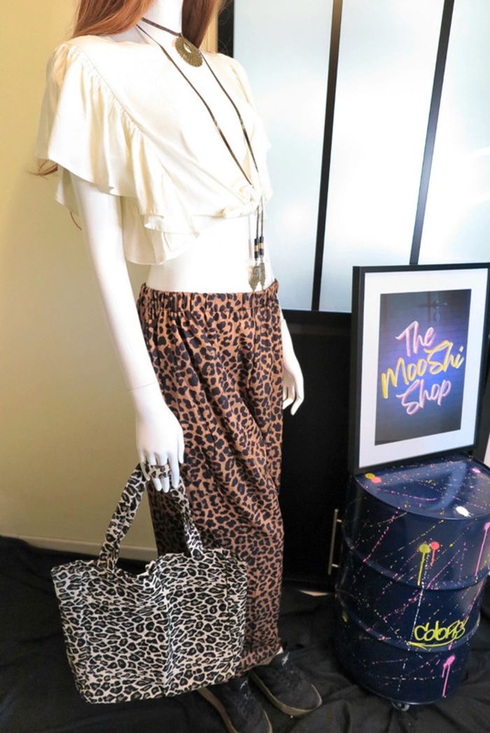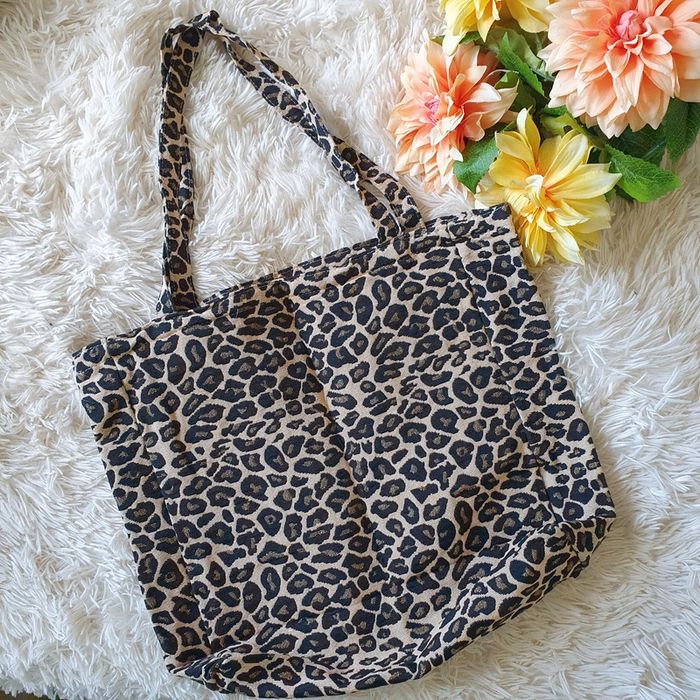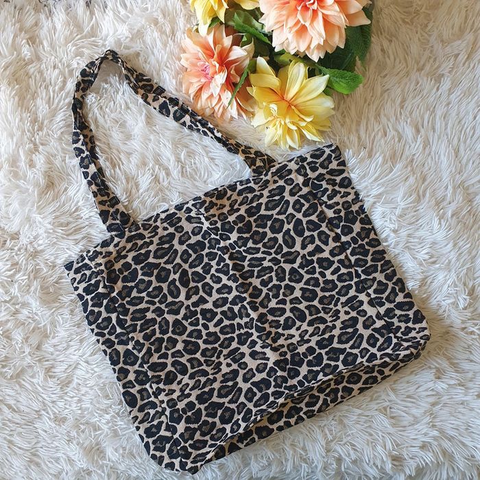 👜 Sac à main totebag fourre-tout sac de cours école courses cabas jacquard léopard 🐆 noir beige neuf