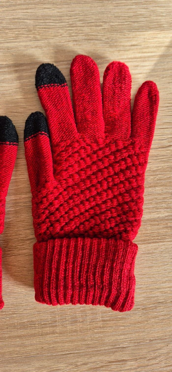 Gants en laine tactiles rouge taille unique - photo numéro 2