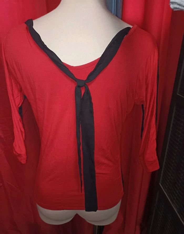 Haut rouge dentelle noire breal 38/40 - photo numéro 4