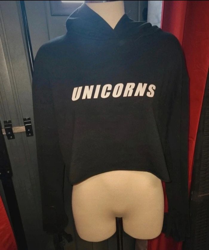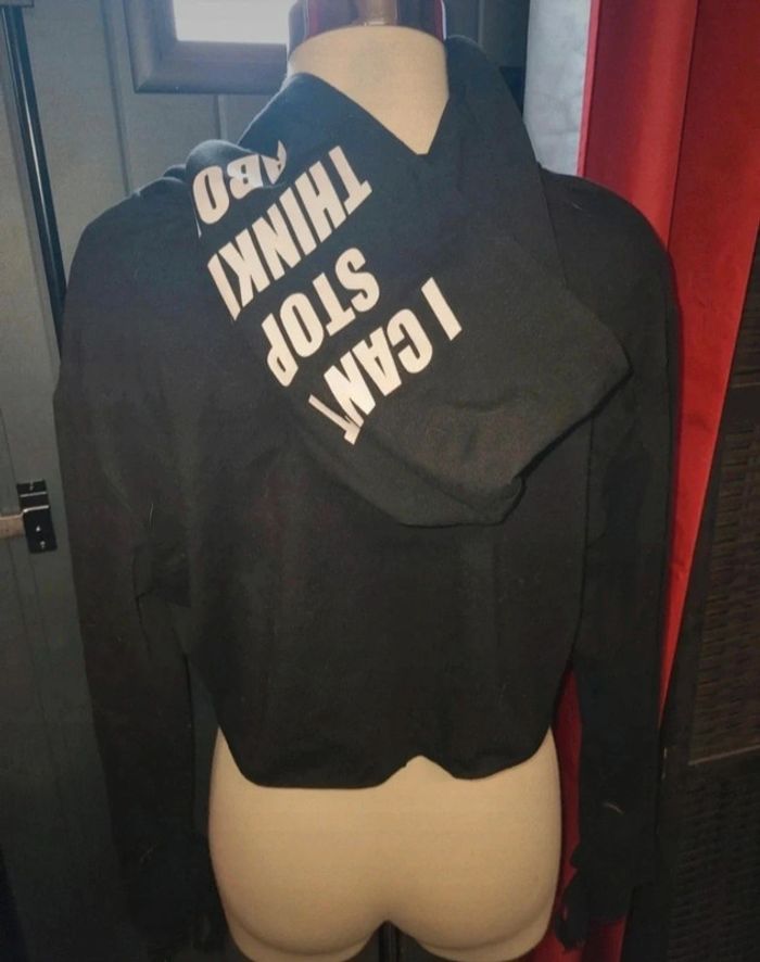 Sweat à capuche de la marque tally weijl Inscription devant et sur la capuche . Manches évasées avec liens Taille L #A2life_taille40