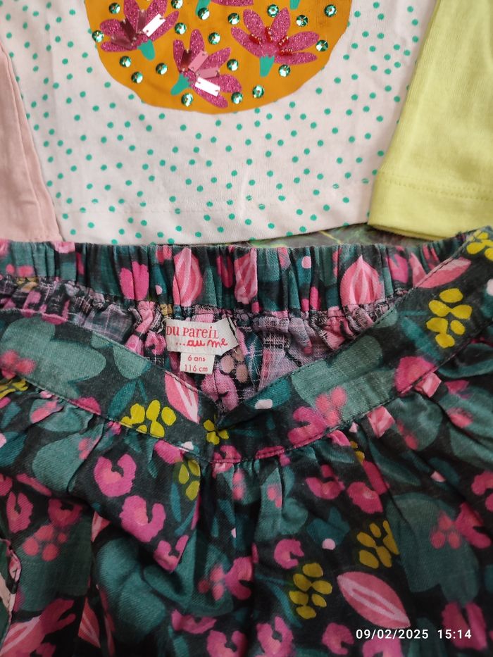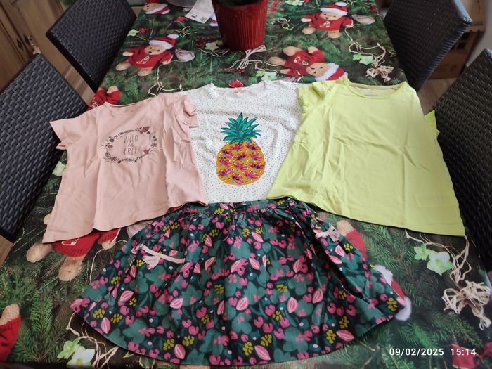 Lot de vêtements été fille jupe et tee shirt dpam et 2 tee shorts lupilu