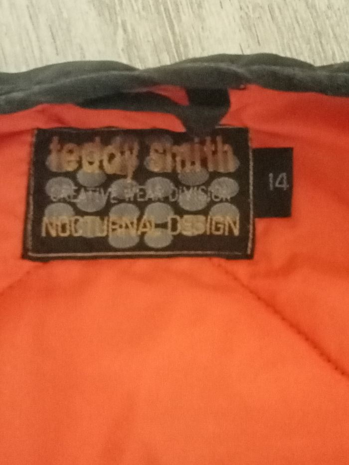 Veste 14 ans matelassée, fermeture éclair on juste le bout de la tirette n'est pas d'origine remplacée par la tête de Donald. La veste est en parfait état.