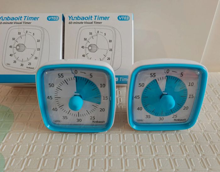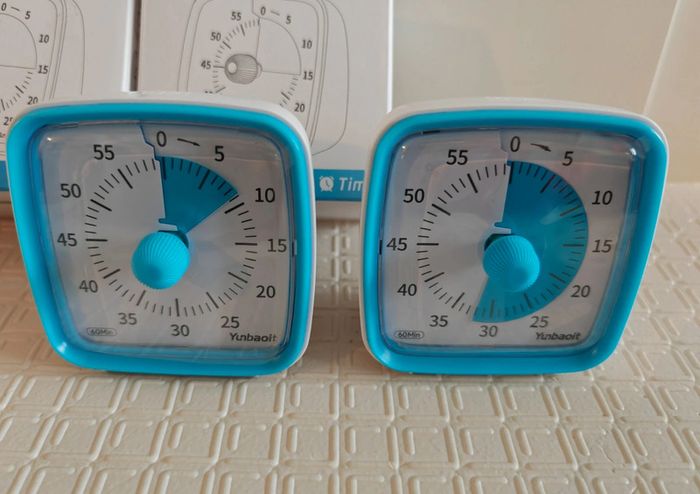 Lot de 2 minuteur visuel bleu. 60 minutes, avec ou sans alarme. Favorise l'Autonomie, la gestion du temps, l'organisation, la concentration et l'indépendance. Enfant ou adulte, tdah, tsa ou noeurotypique. #marion70270jouet