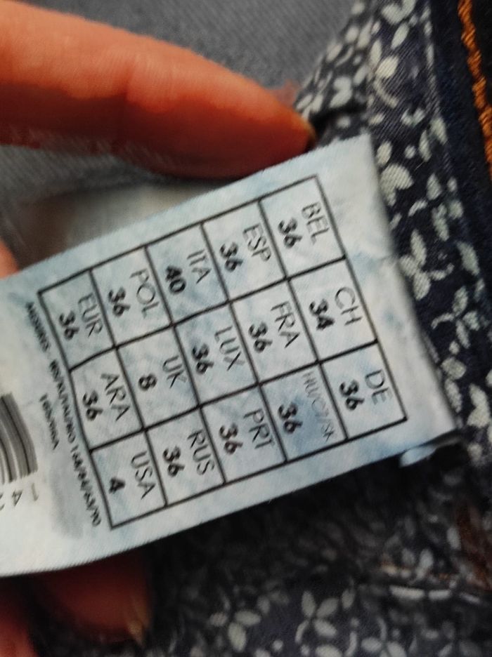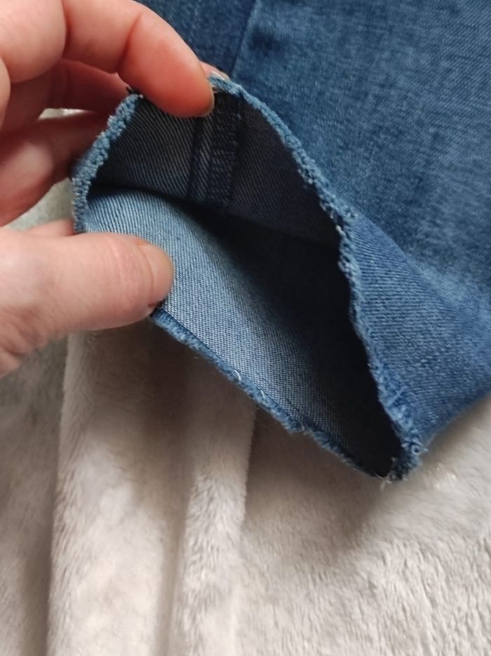 jean slim/skinny délavé, ni trous tâches ou déchirures seul le bas des chevilles à été raccourci en découpe. Marque promod en taille 36.