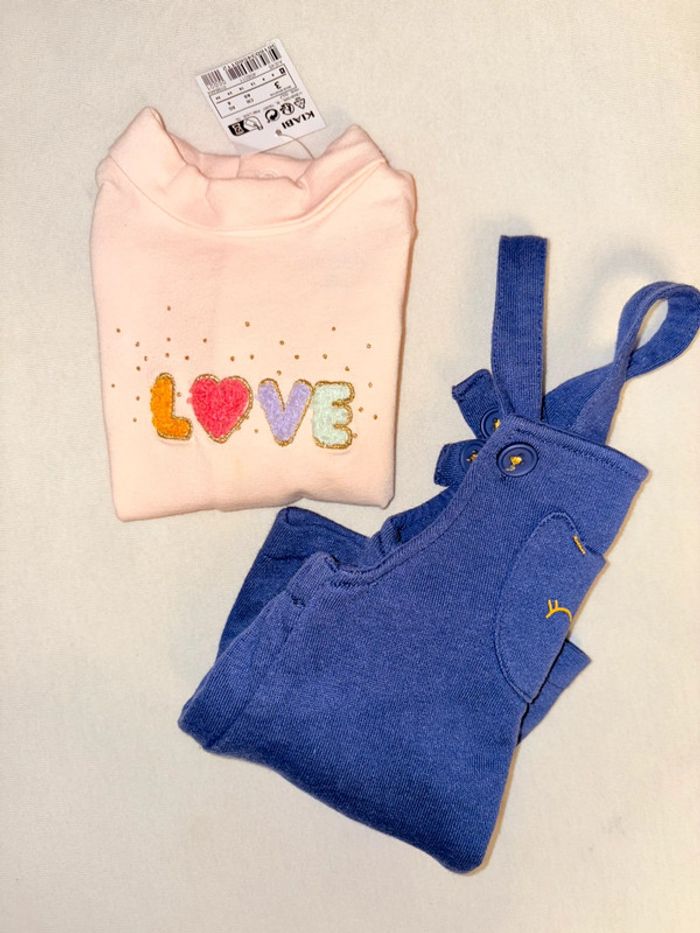 T-shirt manche longue neuf avec salopette jupe Taille 3 mois En très bonne état