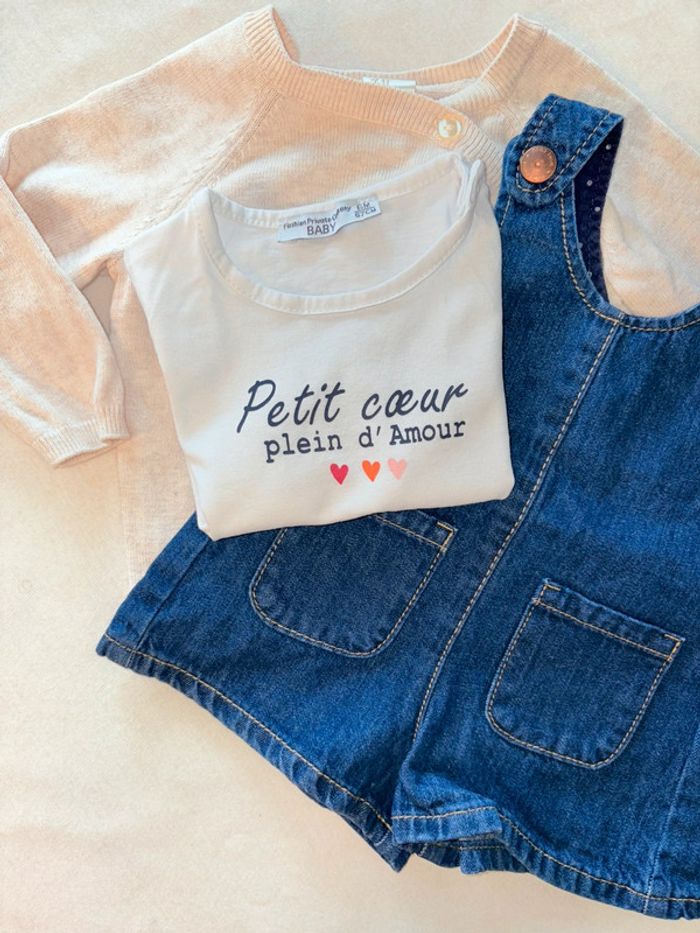 Ensemble 3 pièces gilet, salopette short et t-shirt Taille 68 En très bonne état #6mois #taille68 #lotdevetement6mois #lotdevetements #vetementbebe #ensemblefille6mois #fille6mois #pullfille6mois #pyjama6mois #bodiefille6mois #pantalonfille6mois #Zara #Disney #orchestra #sergentmajor #pyjama2pieces #kiabi #mango #tapealoeil #neuf #été #short #tshirt