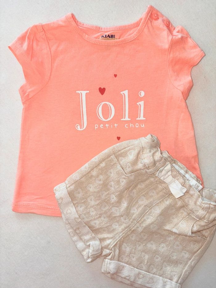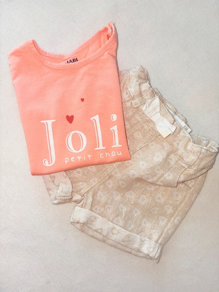 Ensemble t-shirt rose et short à cœur Taille 68 En très bonne état #6mois #taille68 #lotdevetement6mois #lotdevetements #vetementbebe #ensemblefille6mois #fille6mois #pullfille6mois #pyjama6mois #bodiefille6mois #pantalonfille6mois #Zara #Disney #orchestra #sergentmajor #pyjama2pieces #kiabi #mango #tapealoeil #neuf #été #short #tshirt