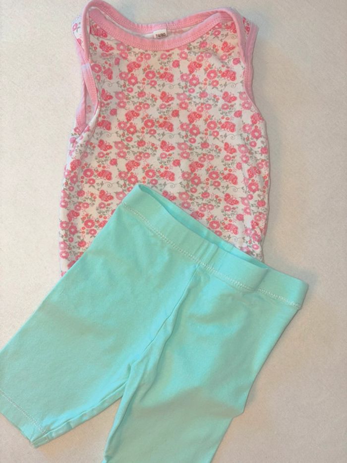 Ensemble t-shirt, pantacourt et bodie Taille 74 En très bonne état