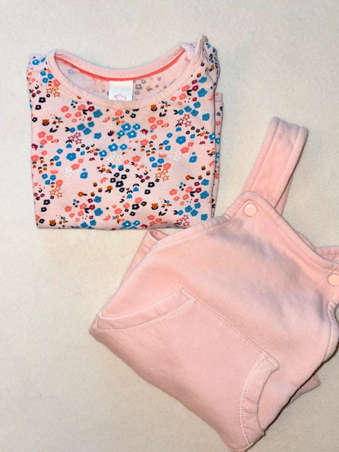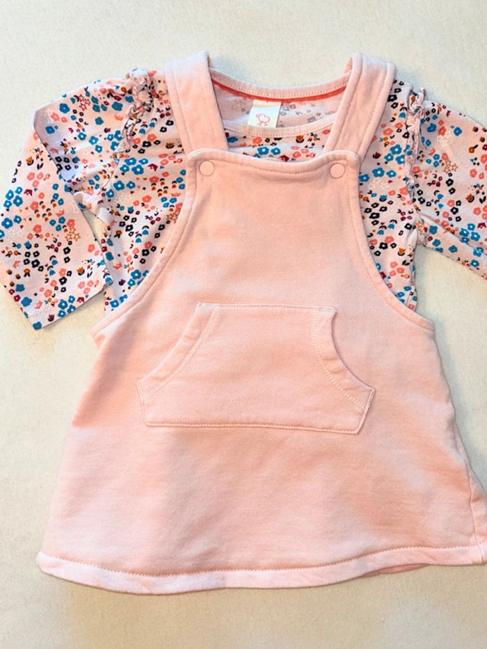 Ensemble robe salopette et t-shirt manche longue Taille 74 En très bonne état