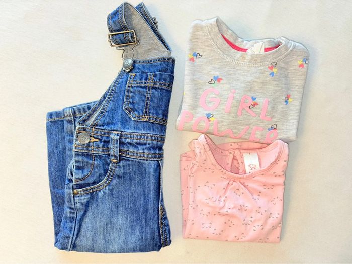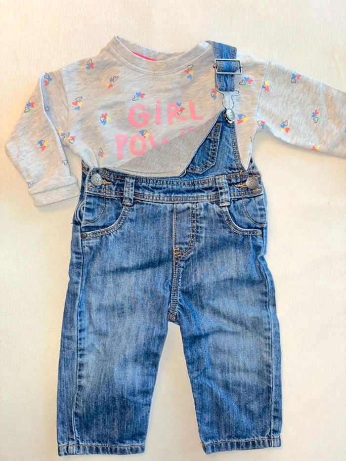 Ensemble de trois pièces salopette pull et t-shirt manche longue Taille 80 En très bonne état