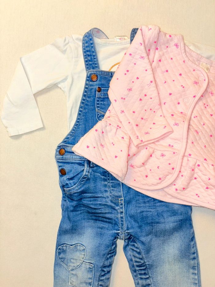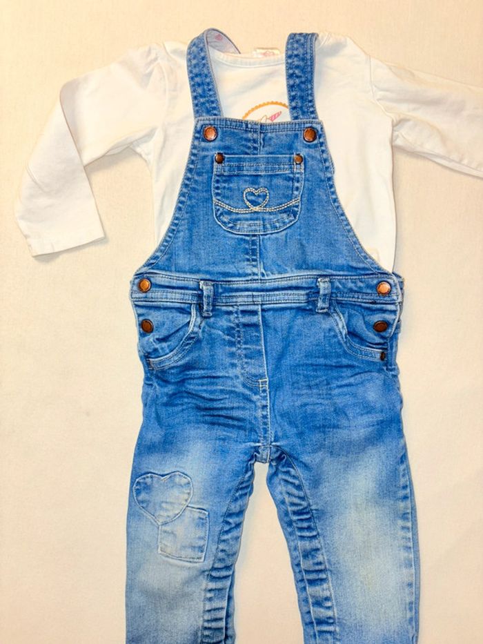 Ensemble salopette (vert baudet) t-shirt manche longue et gilet Taille 80 En très bonne état