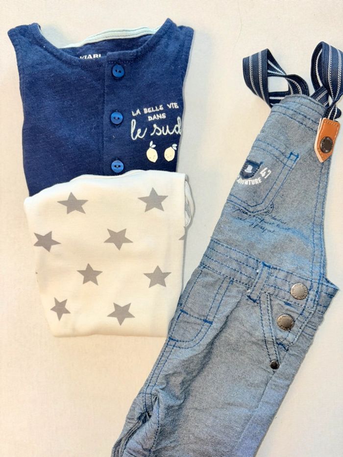 Lot d’une combi short, salopette et bodie Taille 68 En très bonne état