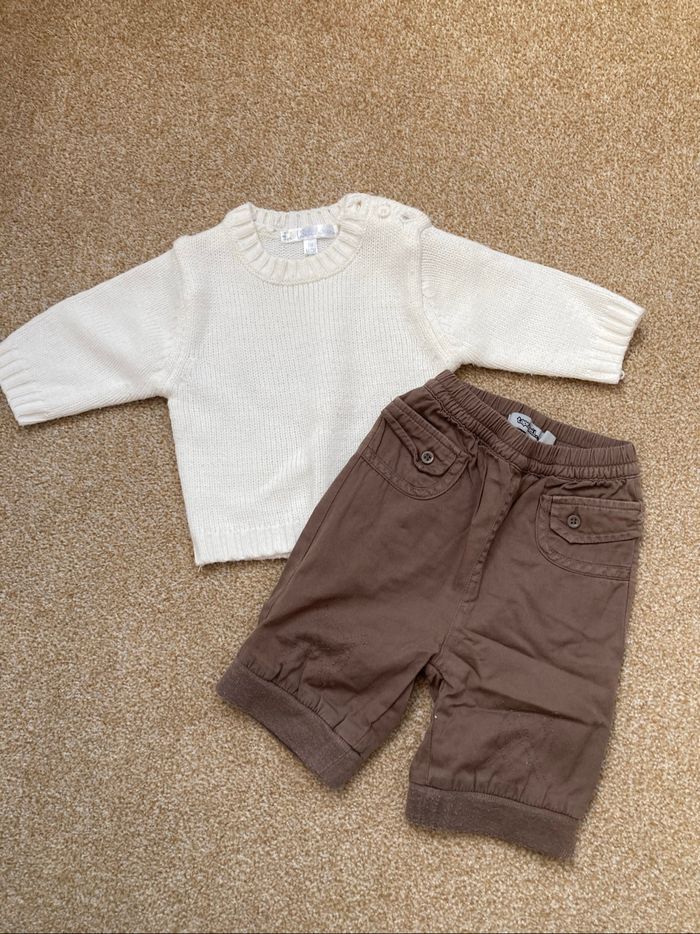 Pantalon tape à l'œil Pull kitchoun très bon état 1 mois 54 cm