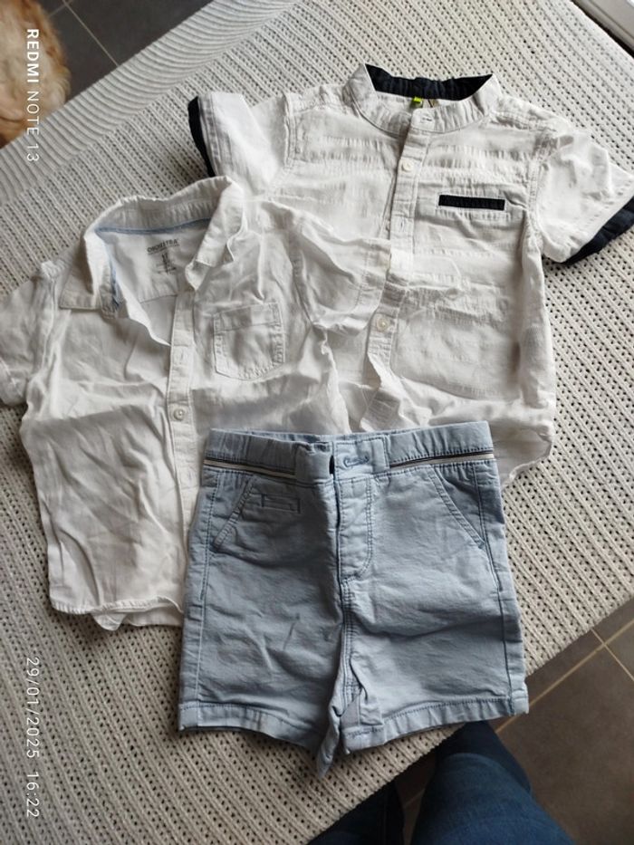 Ensemble short à bretelles + 2 chemises 18 mois - photo numéro 1