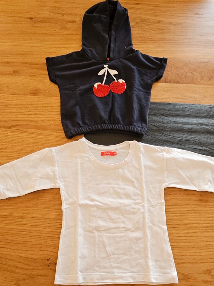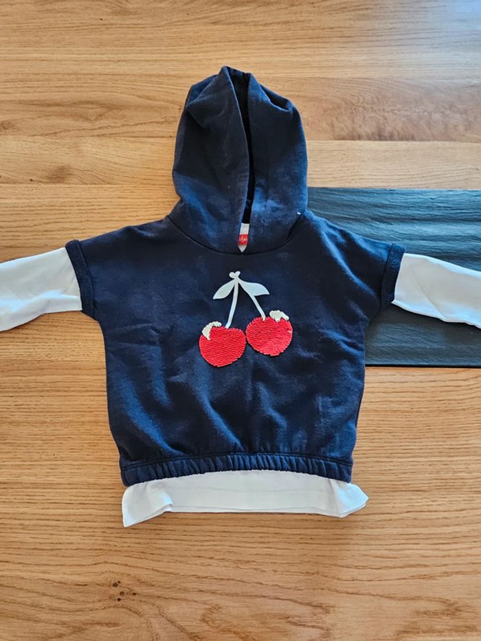 Ensemble sweat cerises sequins réversibles + t-shirt ML 5 ans Tissaia près peu porté #jucan5ans