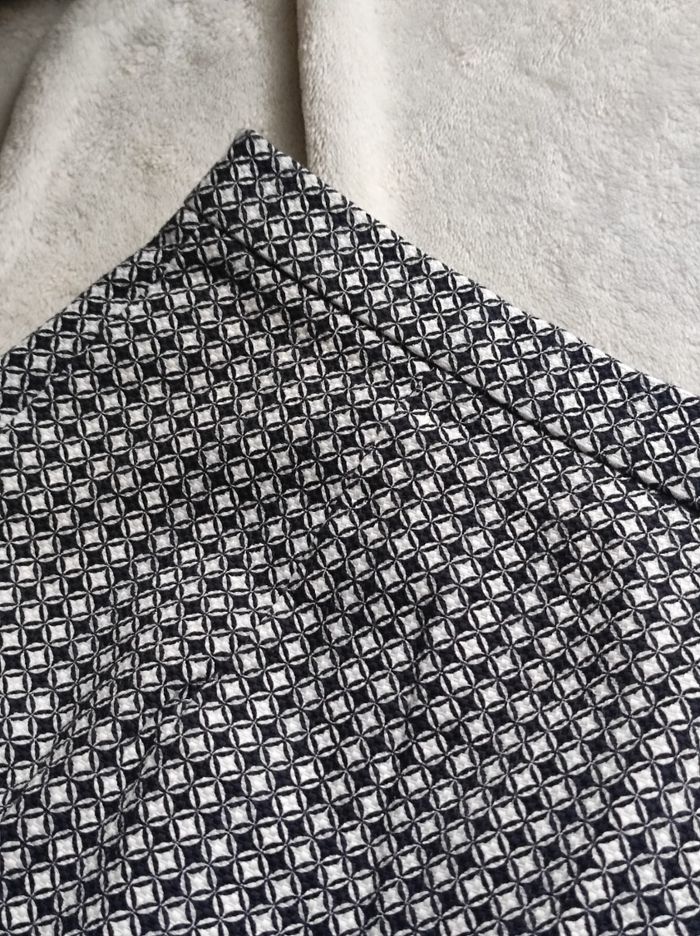 jupe courte en taille haute, imprimé à carreaux noire et blanc. Fermeture éclair, taille 36. 98% coton et 2% elasthanne. Peu porté, en parfait état.