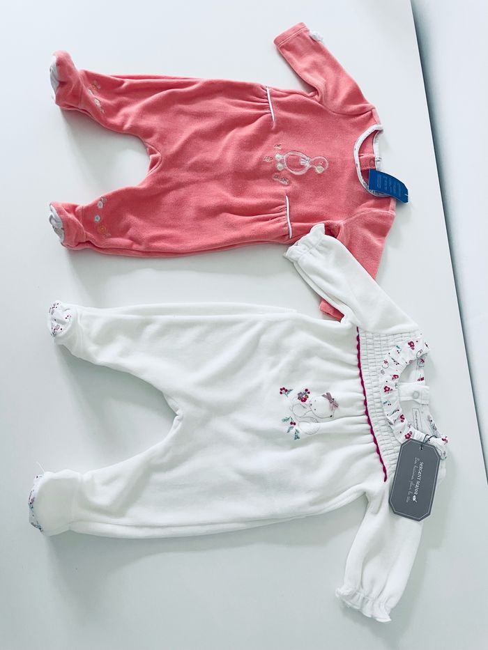 Magnifique lot de deux pyjamas en velours de la marque Serge Major L’un est en taille naissance (50 cm) et l’autre est en taille 1 mois Article neuf avec étiquette