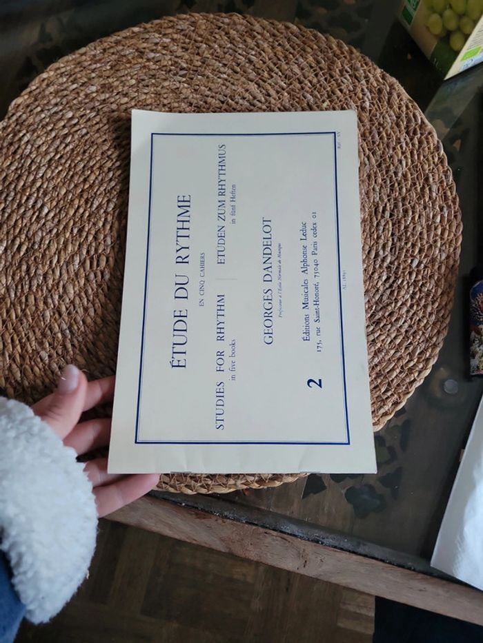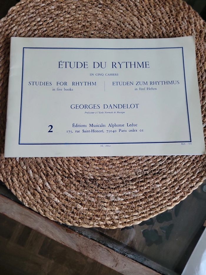 L'Étude du Rythme est un outil pédagogique proposé par Georges Dandelot (1895-1975), compositeur français, suivant le concept que le rythme est le fondement sur lequel se superposent ensuite la mélodie et l'harmonie. Il a été conçu pour apprendre progressivement aux musiciens à traiter des rythmes compliqués tels que ceux utilisés par Bartok ou Ravel. Ce volume est le premier de cinq qui composent une méthode pas à pas pour apprendre et maîtriser le rythme en musique. Il couvre les bases et les mélodies simples - le deuxième volume introduit plus de complexité sur le même concept, puis le troisième devrait aider les pianistes à jouer différents rythmes avec chaque main. Les volumes quatre et cinq utilisent des combinaisons complexes de rythmes et de mélodies avec des tempos binaires et tertiaires. Neuf, sans étiquette Lot possible sur demande avec divers articles de mon dressing. Envoi sous 24h_48h