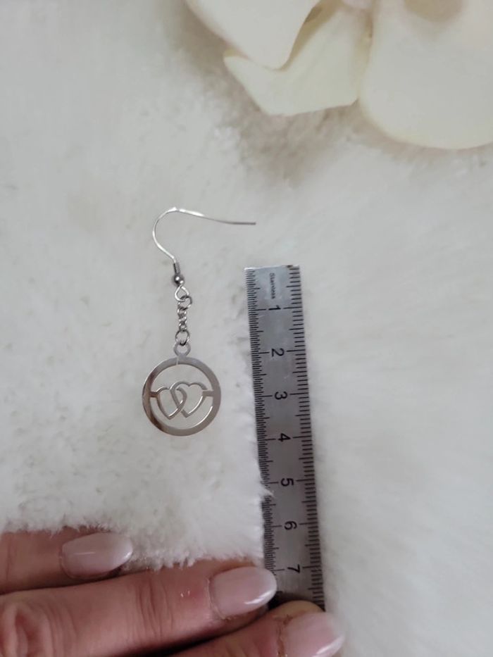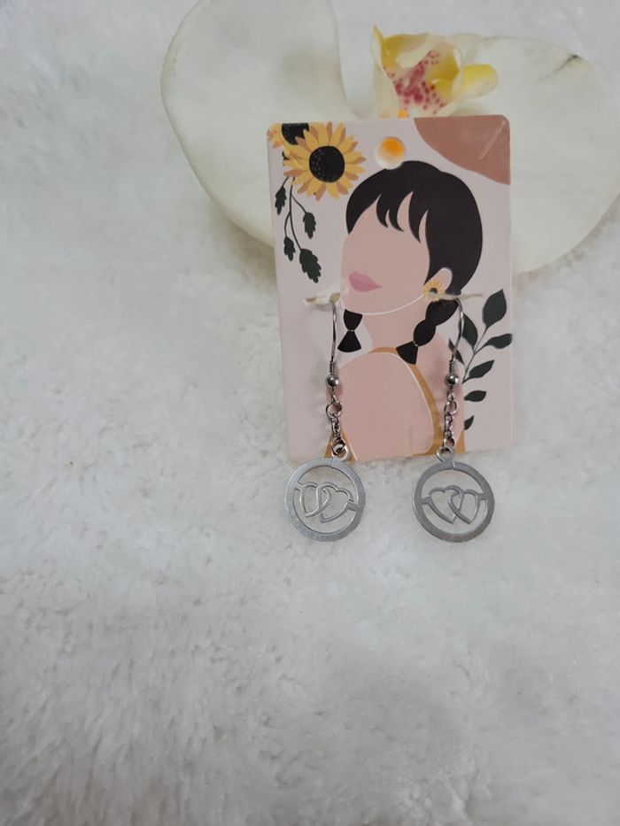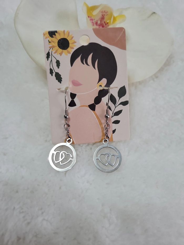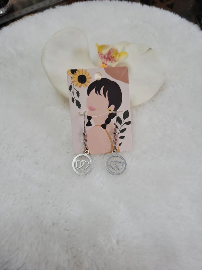 Paire de boucles d oreilles percées Double cœ💕...st Valentin Possible en clips (+2e) Neuves. Attache en acier inoxydable silver Hyppoallergenique. Neuves Lot possible sur demande avec divers articles de mon dressing. Envoi sous 24h_48h