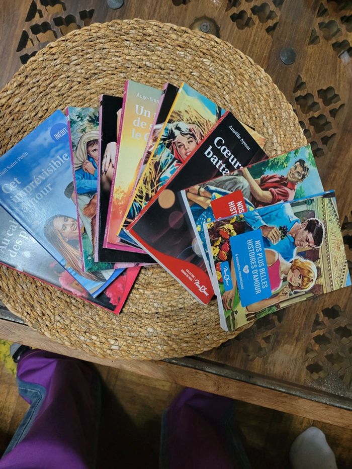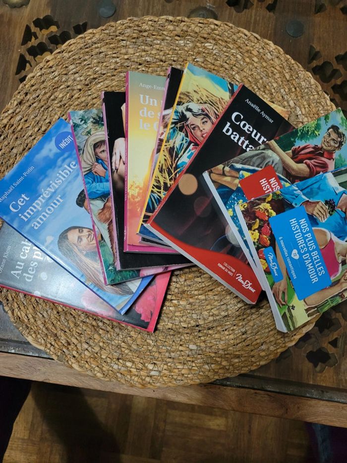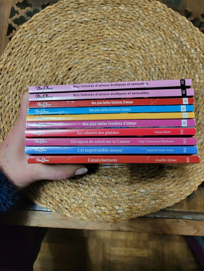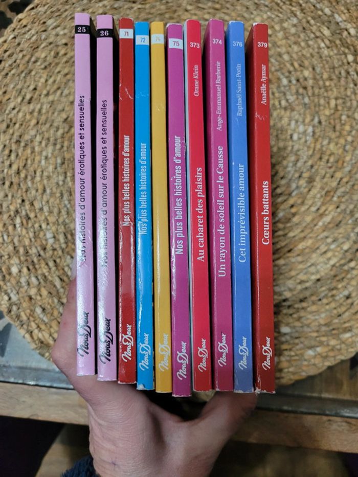 Lot de 10 livres en tres bon état. 10 histoires romantiques de quoi égayer nos soirées hivernales... " nous deux" Lot possible sur demande avec divers articles de mon dressing. Envoi sous 24h_48h