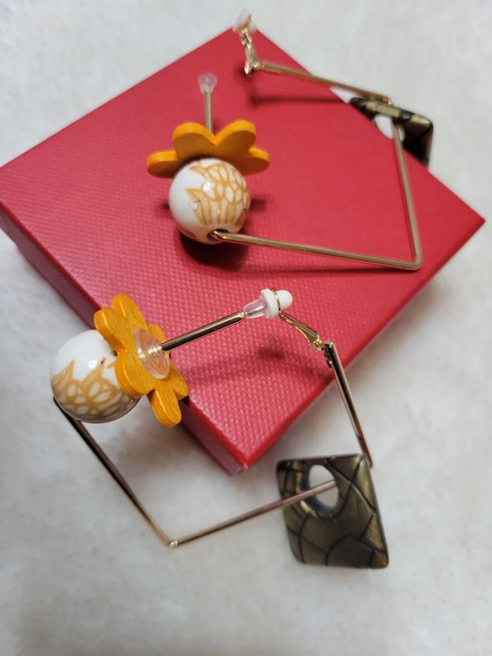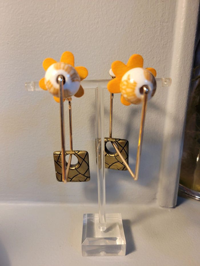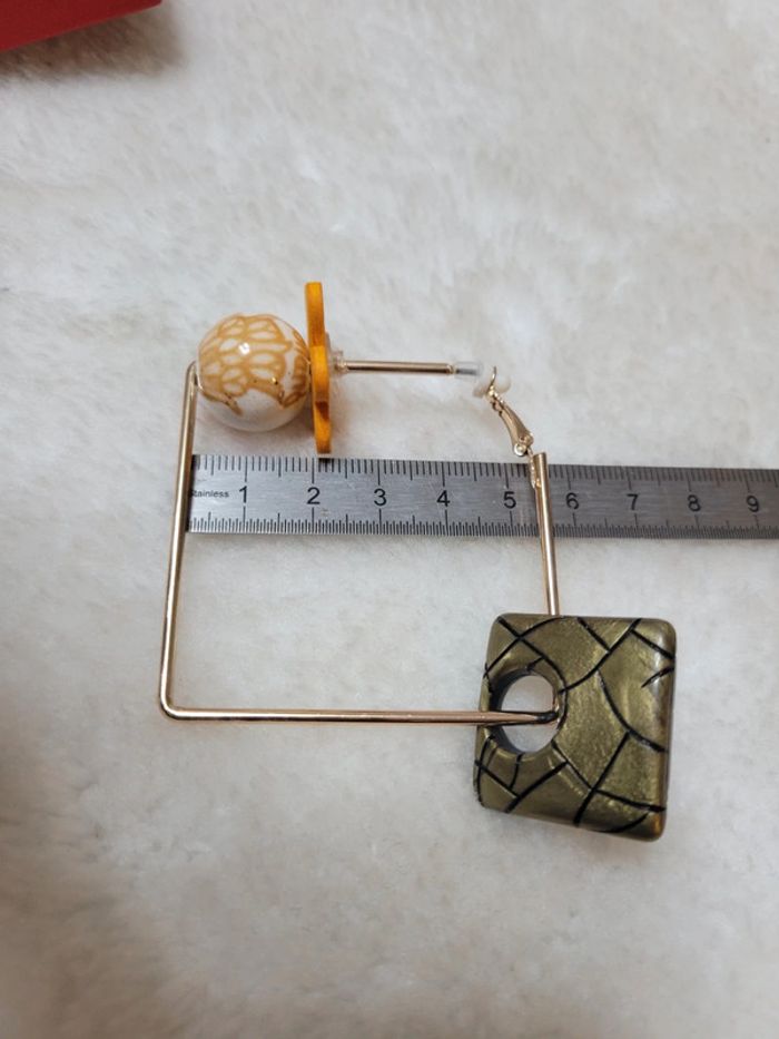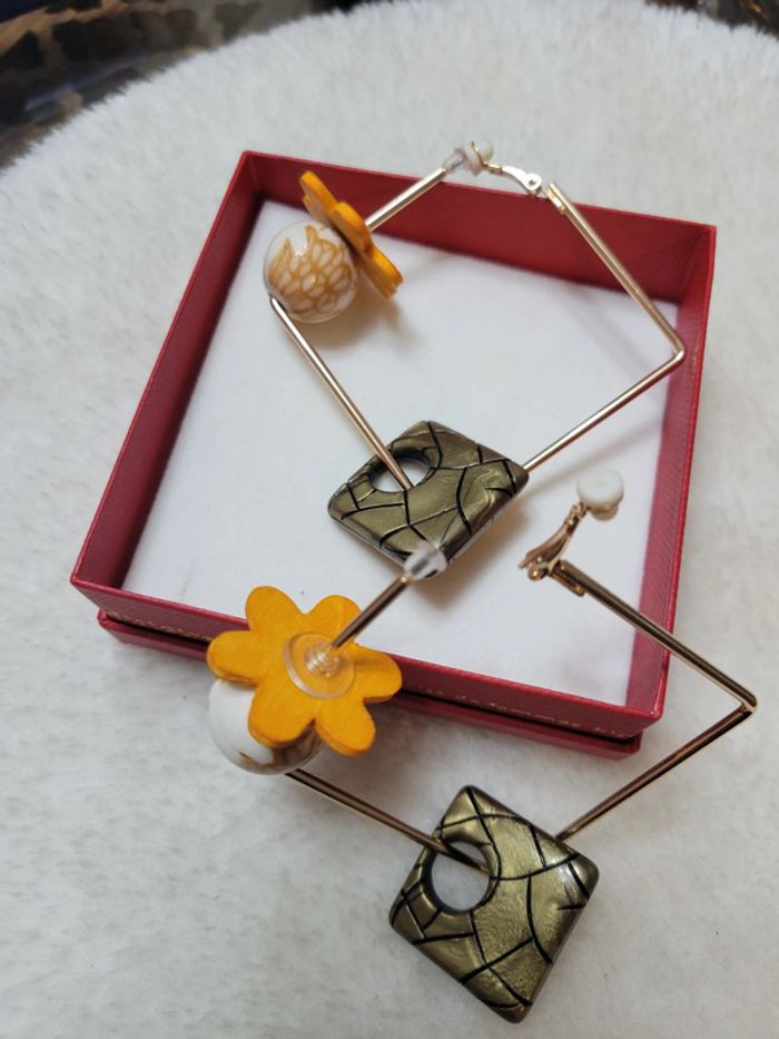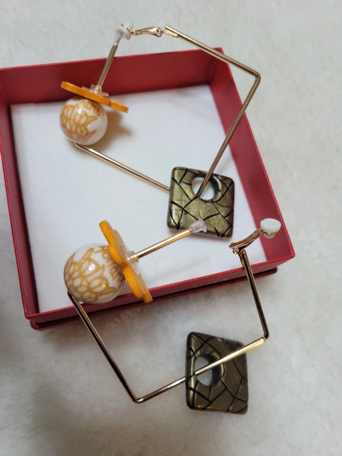 Clips creoles carré acier inoxydable gold. 5cm Chqäaque perles choisies avec soin Hypoallergeniques. Modèle unique Neufs Lot possible avec plusieurs articles .... Envoi sous 24h / 48h.