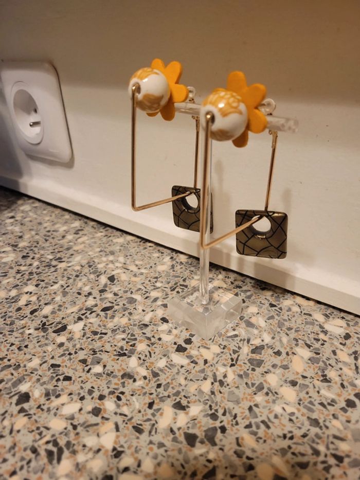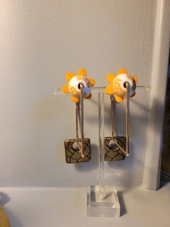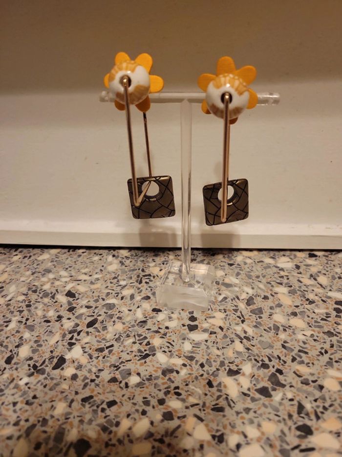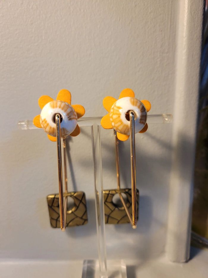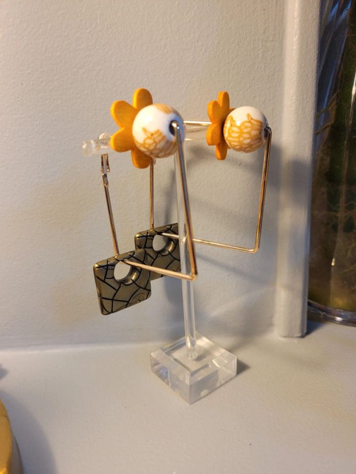 Clips creoles carré acier inoxydable gold. 5cm Chqäaque perles choisies avec soin Hypoallergeniques. Modèle unique Neufs Lot possible avec plusieurs articles .... Envoi sous 24h / 48h.