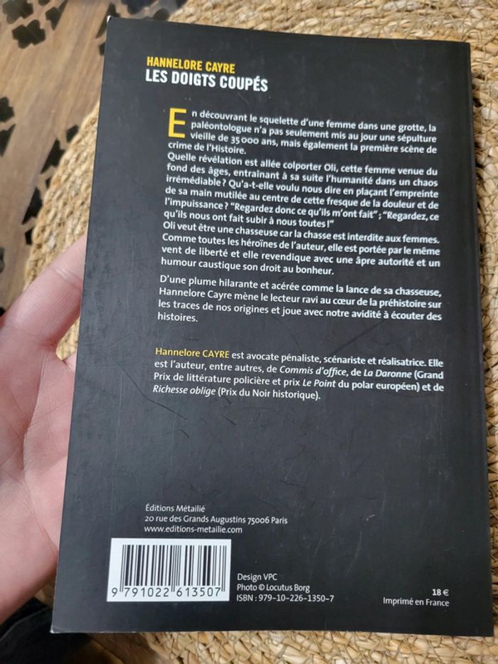 En creusant pour faire une piscine en Dordogne, un entrepreneur découvre une grotte aux parois couvertes d’empreintes de mains de femmes, beaucoup amputées de deux ou trois doigts, et deux squelettes dont la position fait penser à une scène de crime... ... Neuf sans étiquette Lot possible sur demande avec divers articles de mon dressing. Envoi sous 24h_48h