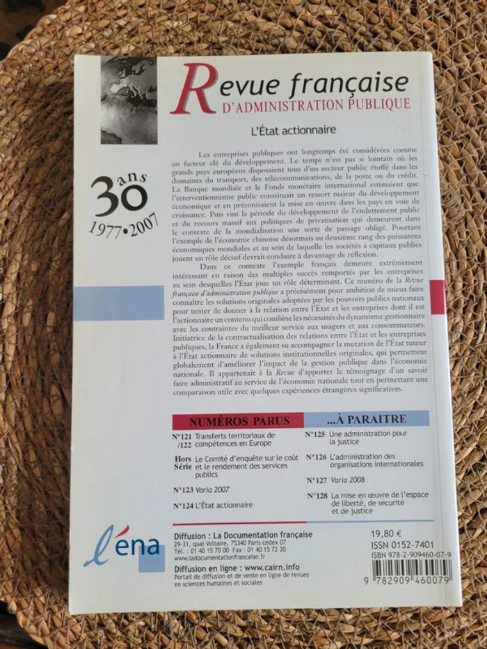 Revue Francaise d administration publique. L' ena. N*124 Très bon état. Lot possible avec d autres articles. Envoi sous 24h_48h