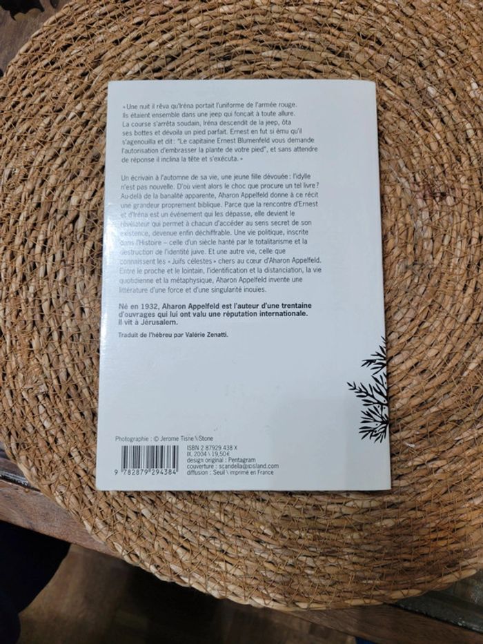 Traduit de l'hébreu par Valérie Zenatti « Une nuit il rêva qu’Iréna portait l’uniforme de l’armée rouge. Ils étaient ensemble dans une jeep qui fonçait à toute allure. La course s’arrêta soudain, Iréna descendit de la jeep, ôta ses bottes et dévoila un pied parfait. Ernest en fut si ému qu’il s’agenouilla et dit : “Le capitaine Ernest Blumenfeld vous demande l’autorisation d’embrasser la plante de votre pied”, et sans attendre de réponse il inclina la tête et s’exécuta. » Très bon état. Valeur 19,50e Envoi sous 24h_48h