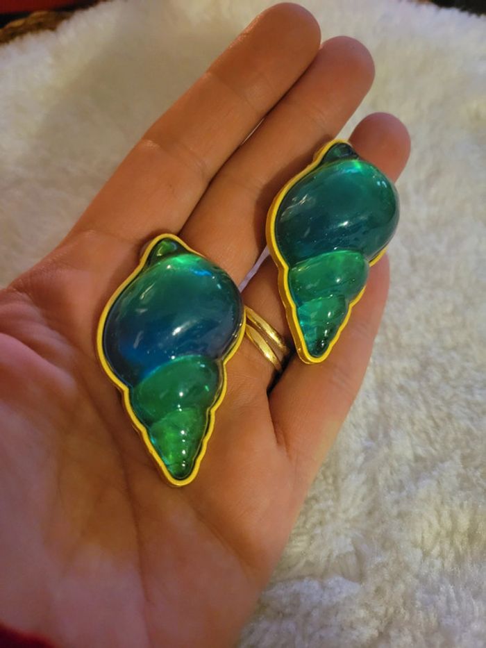 Magnifiques boucles d oreilles coquillage vert, bleu, reflets. Encore bien plus beaux que mes photos 📸!!!!! "Cossues" mais restent légères...😉 Tige en acier inoxydable, oreilles percées, Hyppoallergenique Neuves. Lot possible avec # articles de mon dressing. Pochette cadeau offerte sur demande Envoi sous 24h_48h