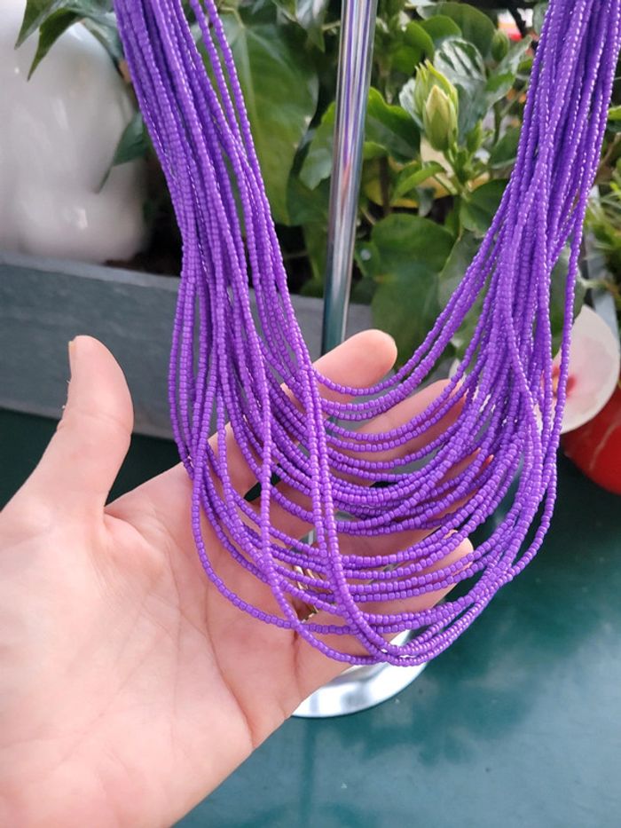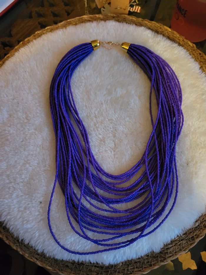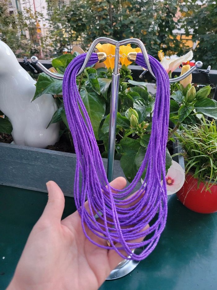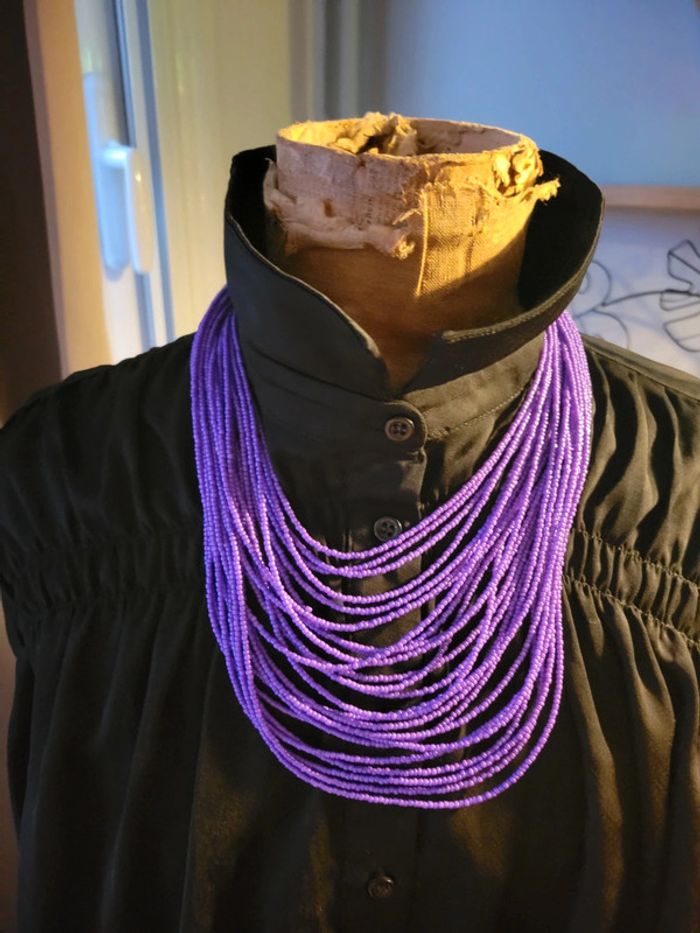 Joli collier violet, rangs de perles violette. Tres bel effet, chic. Envoi sous 24h_48h