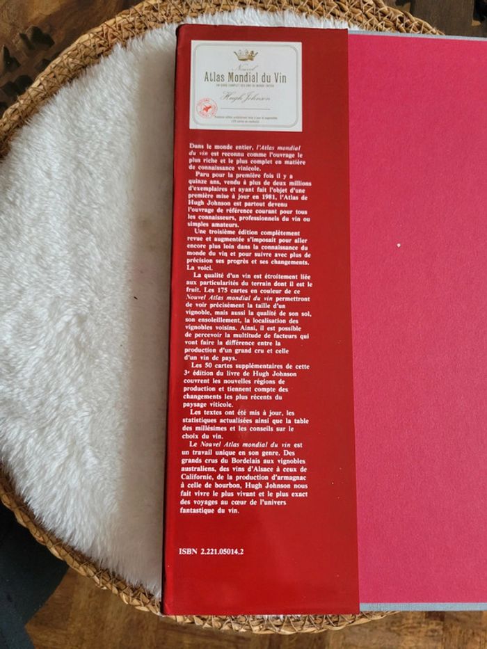 Hugh Johnson a parcouru le monde entier pour l'élaboration de cette nouvelle édition du Nouvel Atlas mondial du vin. " Goûter le vin n'est pas une activité aussi paisible qu'on se l'imagine. On part le matin dans une jeep cahotante et on se balade ensuite dans la boue, juste pour apprécier la qualité d'un sol et le travail des viticulteurs... Mais il est aussi des jours bénis des dieux, quand l'aurore est rose et que la matinée commence par une promenade dans les ruelles d'un vieux village embaumées par les odeurs de fermentation, puis dans les vertes rangées de vigne qui commencent à prendre une teinte cuivrée et dorée. " Ce que je préfère, c'est partager la journée de travail de ces admirables artisans, je devrais dire ces artistes, que sont si souvent les vignerons. " Hugh Johnson a acquis une connaissance unique du monde viticole, qui justifie le succès mondial de ses livres. Il possède aussi le rare talent de rendre accessibles les sujets les plus complexes, ce qui lui a permis d'écrire une remarquable suite d'ouvrages, dont Le Guide mondial du connaisseur de vin et Le Guide de poche du vin, remis à jour chaque année - un compagnon à avoir toujours sur soi pour choisir ce qui mérite d'être bu. Bon état Envoi sous 24h_48h