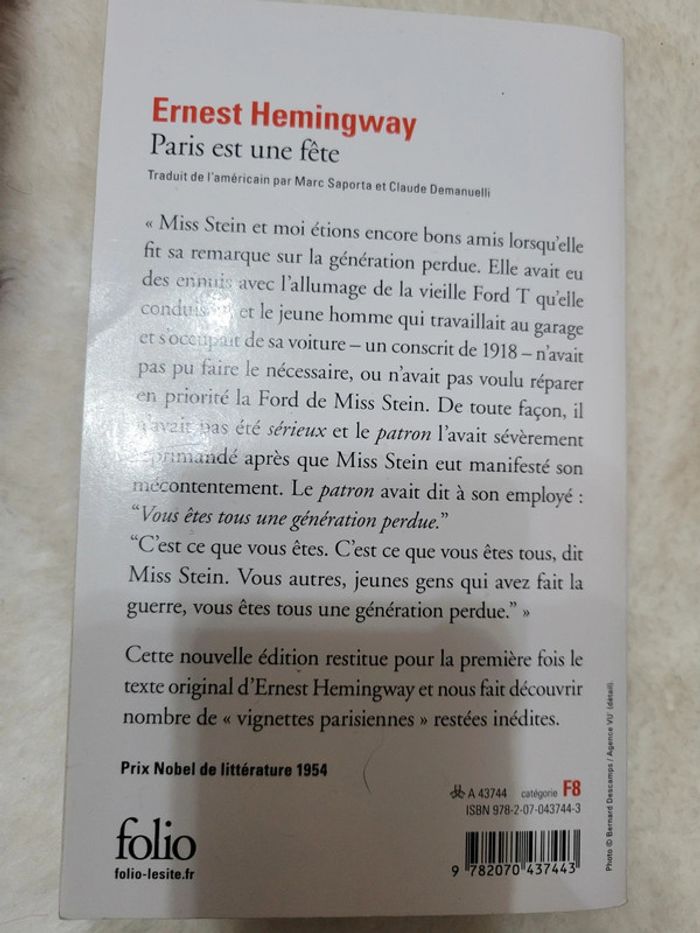 Ernest Hemingway Prix Nobel de littérature. Paris,est une fête. Neuf, sans étiquette. Envoi sous 24h_48h
