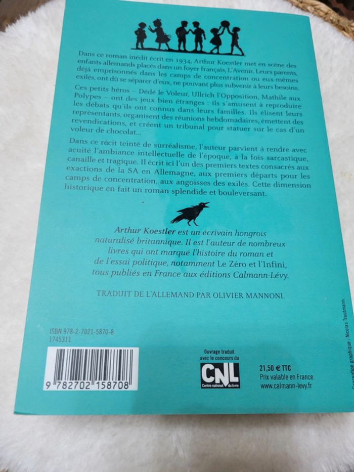 Dans ce récit teinté de surréalisme, l’auteur parvient à rendre avec facuité l’ambiance intellectuelle de l’époque, à la fois sarcastique, canaille et tragique. Il écrit ici l’un des premiers textes consacrés aux exactions de la SA en Allemagne, aux premiers départs pour les camps de concentration, aux angoisses des exilés. Cette dimension historique en fait un roman splendide et bouleversant. Dans ce roman inédit écrit en 1934, Arthur Koestler met en scène des enfants emprisonnés dans les camps de concentration ou eux-mêmes exilés, ont dû se séparer d’eux, ne pouvant plus subvenir à leurs besoins. Neuf sans étiquette. Envoi sous 24h_48h Lot possible avec d autres articles de mon dressing...