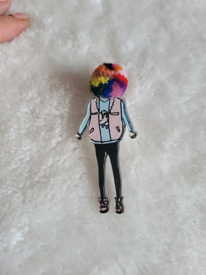 Jolie broche acrylique, originale. Tete en laine. Celle ci egayera, chapeau, veste, pull, 👜.....accessoire. neuve # modèles dans mon dressing.... Pochette 🎁 sur demande Envoi sous 24h_48h