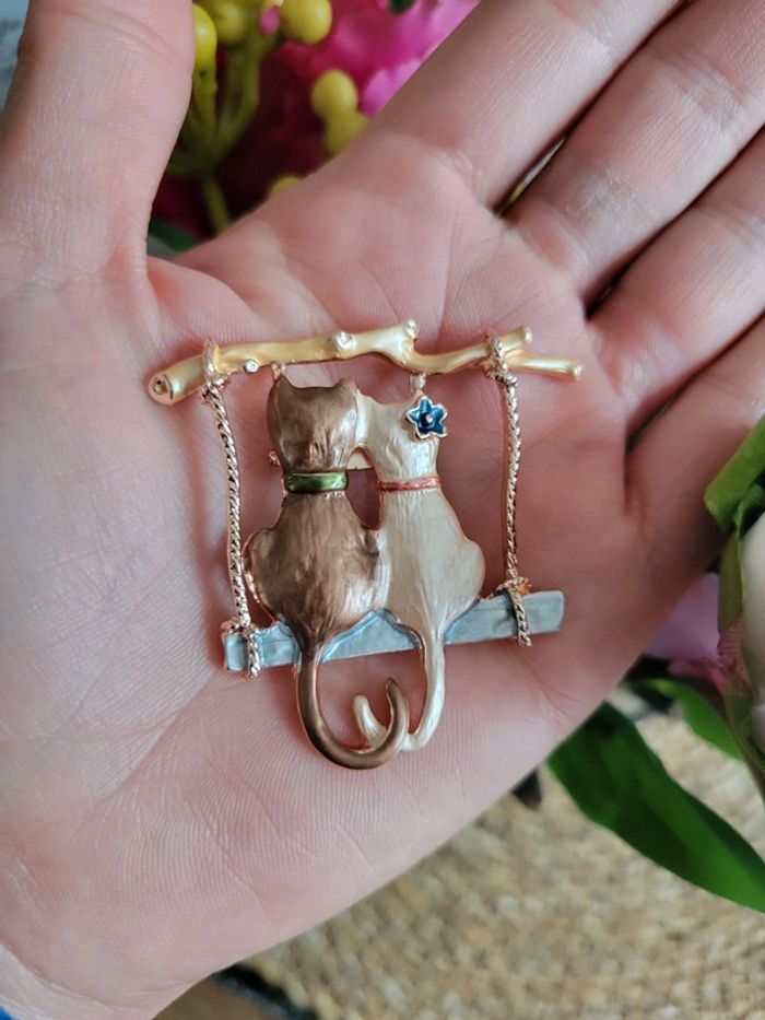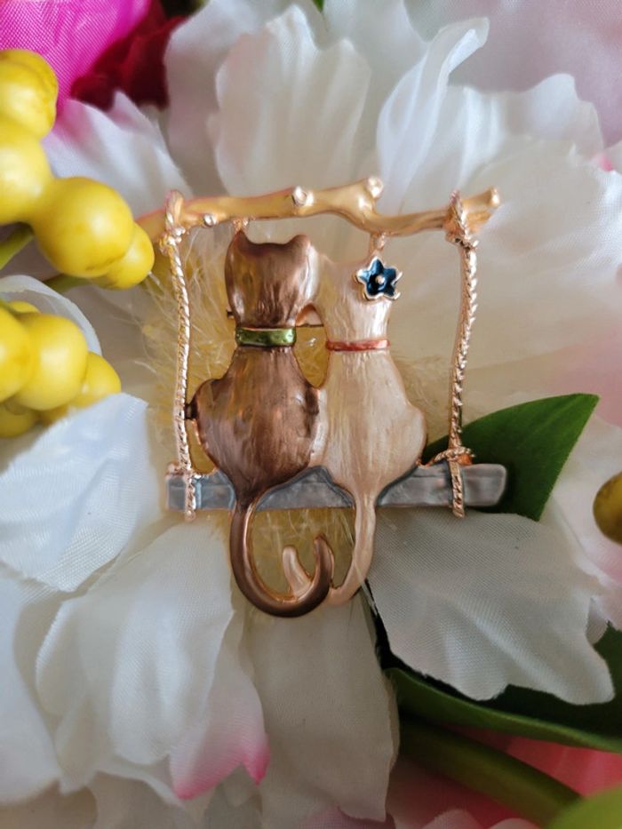 Broche chat et chatte dur da balançoire - photo numéro 1